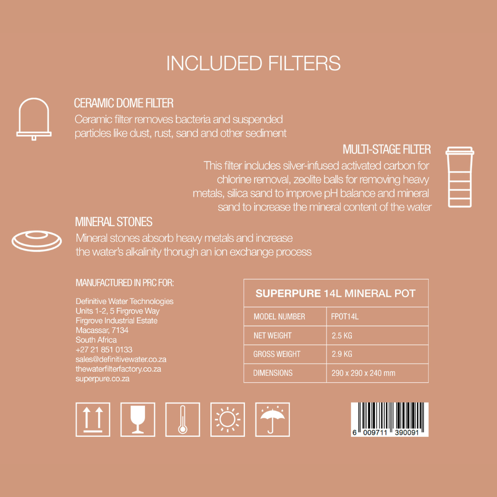 - Product: SUPERPURE 14L Water Dispenser with Filters & Mineral Pot